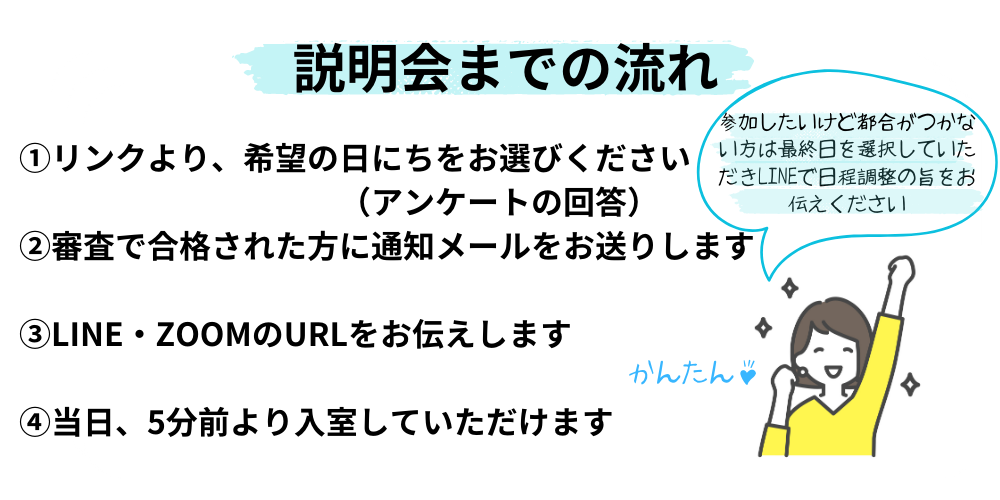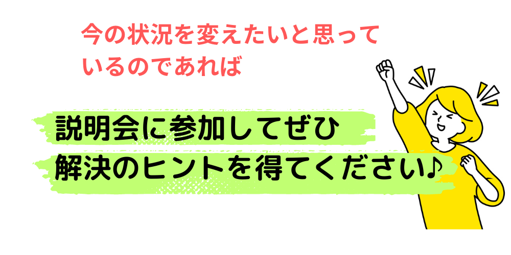 もしあなたが、下記に一つでも当てはまるのであれば、ぜひ一度説明会にご参加ください。イライラしない育児法や在宅で収入を増やしていくためのヒントをたくさん掴み取ることが出来るはずです。